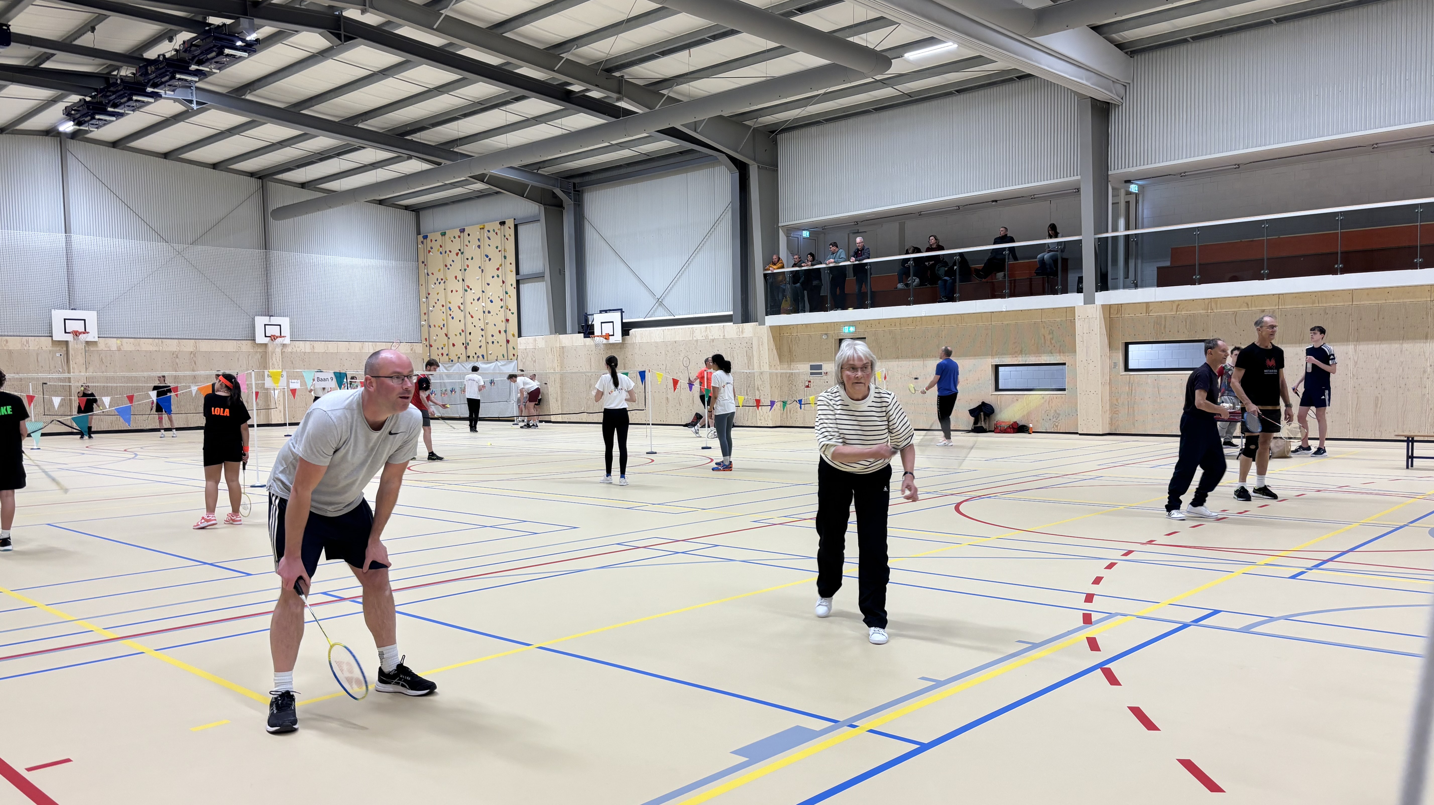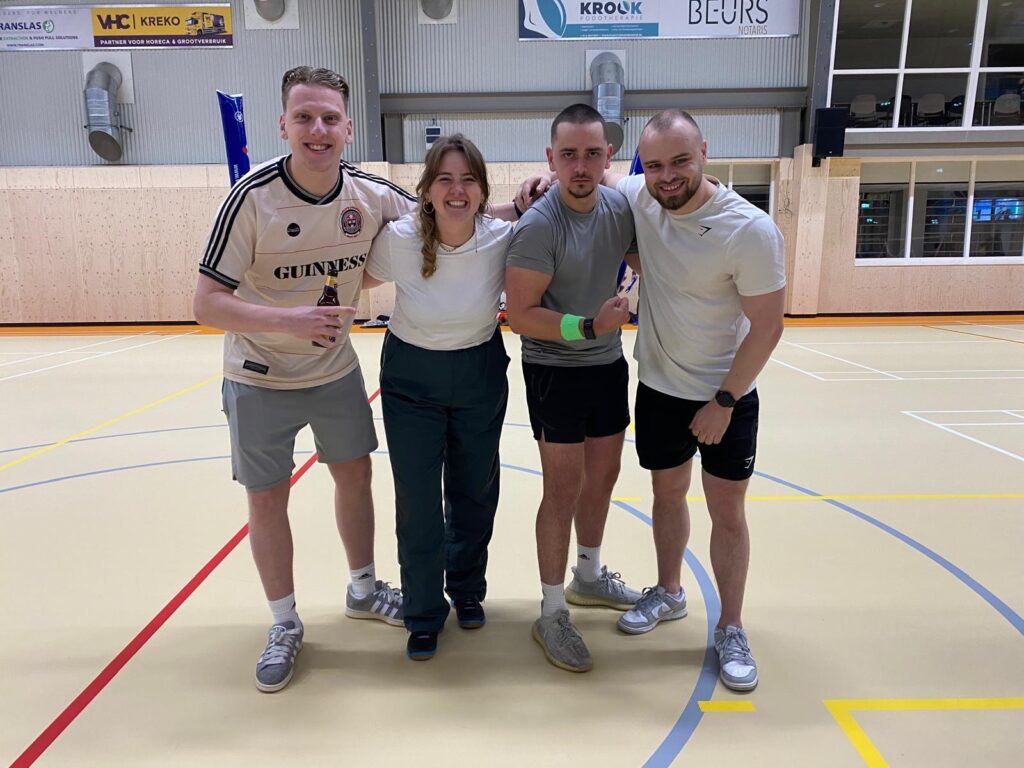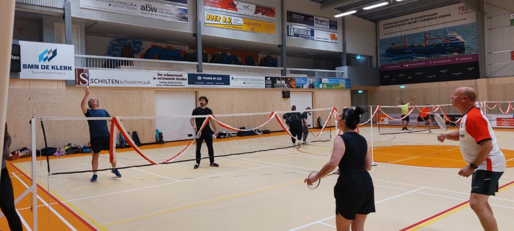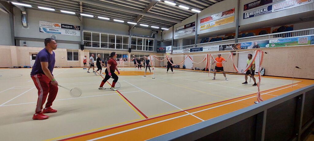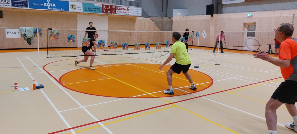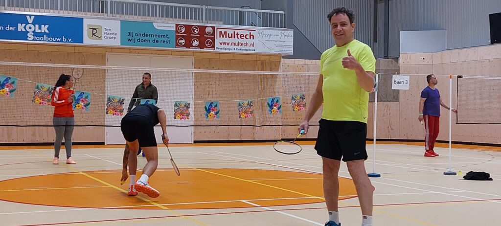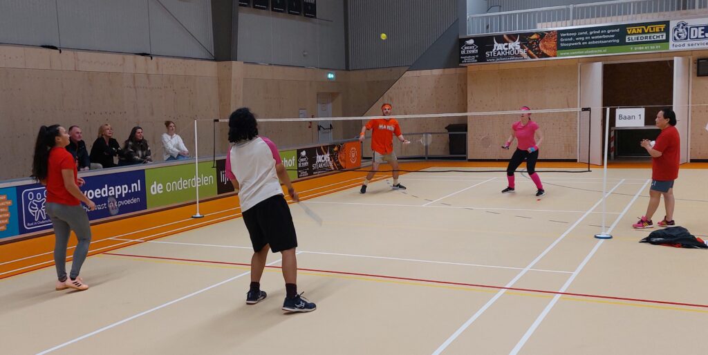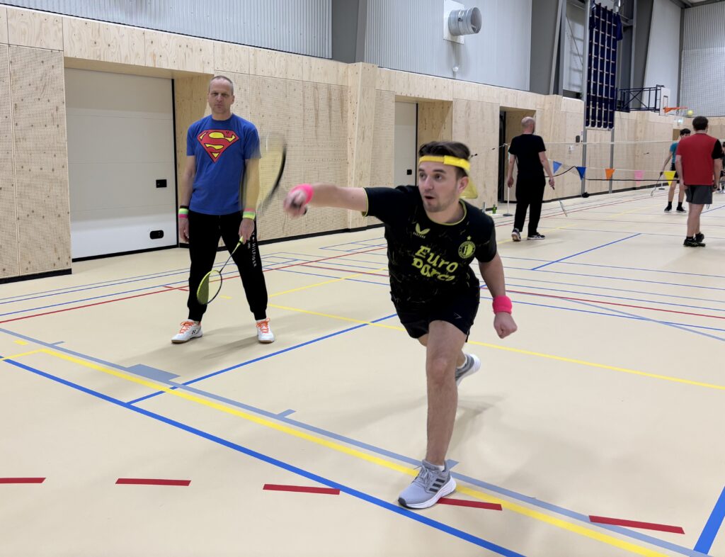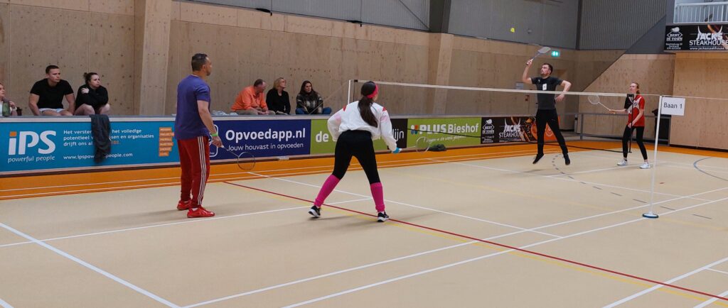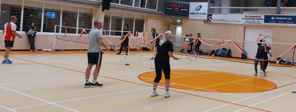 Afgelopen vrijdagavond hebben onze leden en hun familie, vrienden en collega’s met veel enthousiasme gestreden tijdens het teamtoernooi. Zowel hal 1 als hal 2 waren gevuld met badmintonliefhebbers van alle categorieën, van complete beginner tot ervaren trainer (en voormalig eredivisiespeler!), met spelers van 11 tot 77 jaar. In totaal speelden 15 teams mee verdeeld over 3 poules. De 12 speelrondes vlogen voorbij!